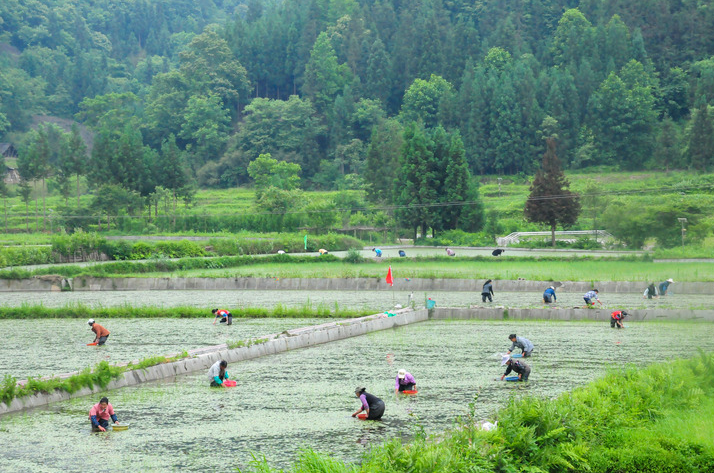 在石柱县冷水镇八龙村,一块块水田掩映在青山绿水间,嫩绿的莼菜叶片漂浮在水面上。经过30多年发展,石柱已成为全国莼菜主产区,全县莼菜种植面积有1.4万多亩。