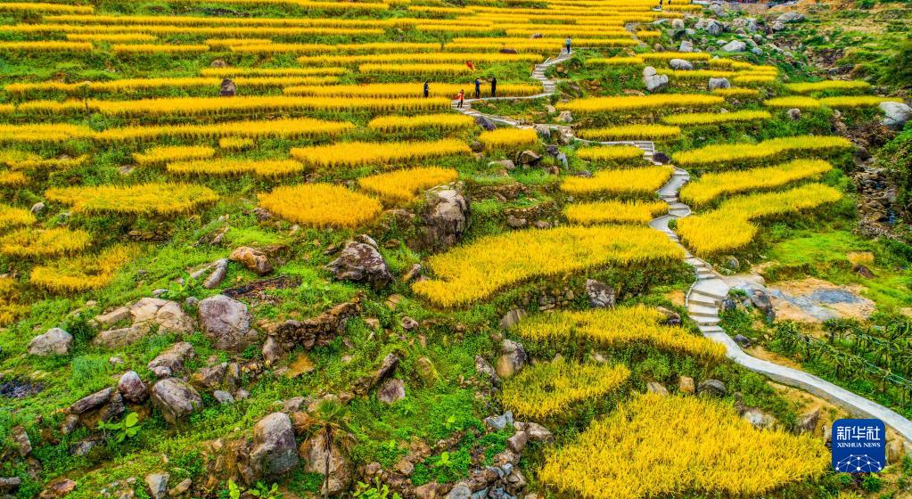 这是汕尾市陆河县上护镇洋岭梯田丰收时节景观(2018年11月1日摄)。新华社发(王贵 摄)