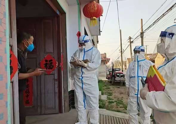 安丘市公安局民警在疫情防控一线入户走访。资料图片