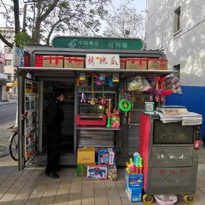 银川市中山公园旁的报刊亭上“烤地瓜”三个字很是醒目,报刊亭外挂满了各种玩具,仅有的两份报纸很不显眼地放在地瓜烤箱上,销售的杂志也大多是往期的。报刊亭内则主要是香烟、饮料和各种小零食。59岁的报刊亭经营者赵志高还有一辆脚蹬三轮车,用于在公园附近销售风筝等。