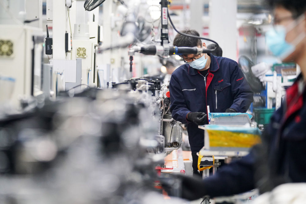 4月15日,在哈尔滨东安汽车动力股份有限公司生产车间,工人在进行生产作业。 新华社记者王建威摄