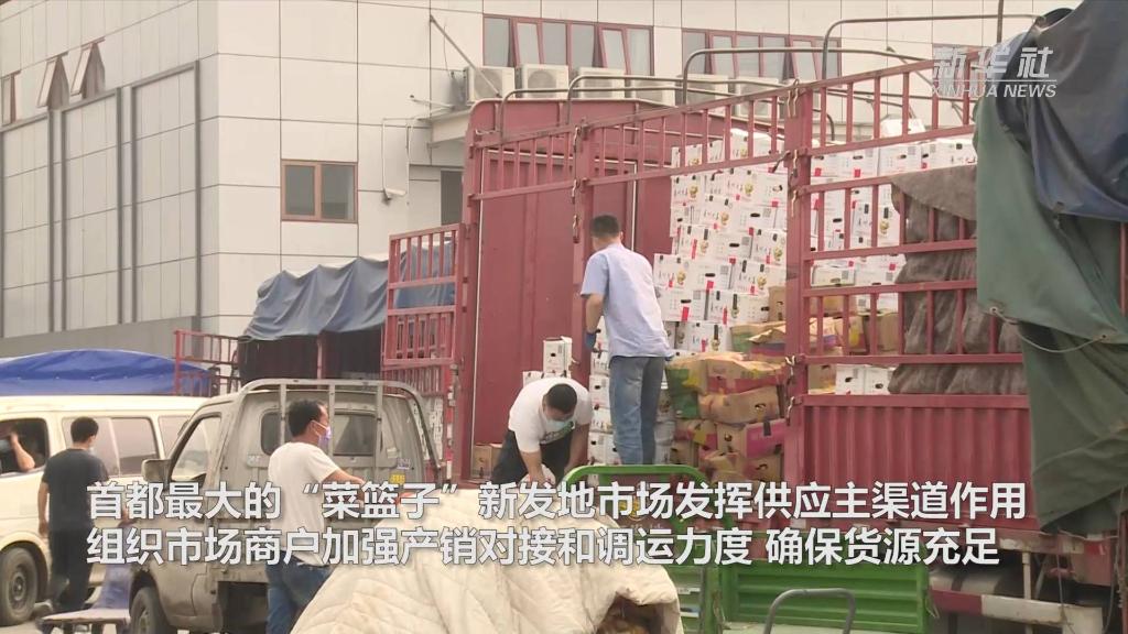 首都最大的“菜篮子”新发地市场发挥供应主渠道作用,组织市场商户加强产销对接和调运力度,确保货源充足。