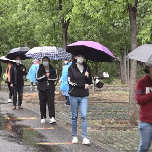 早上6点半,核酸检测开始,太阳宫社区卫生服务中心中医科主任、检测点负责人朱琳琳冒着小雨,带领医务人员开始了一天紧张的工作。