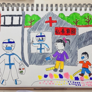 北京市东城区光明幼儿园朝阳分园的幼儿创作的绘画作品《战疫情》。(受访者供图)