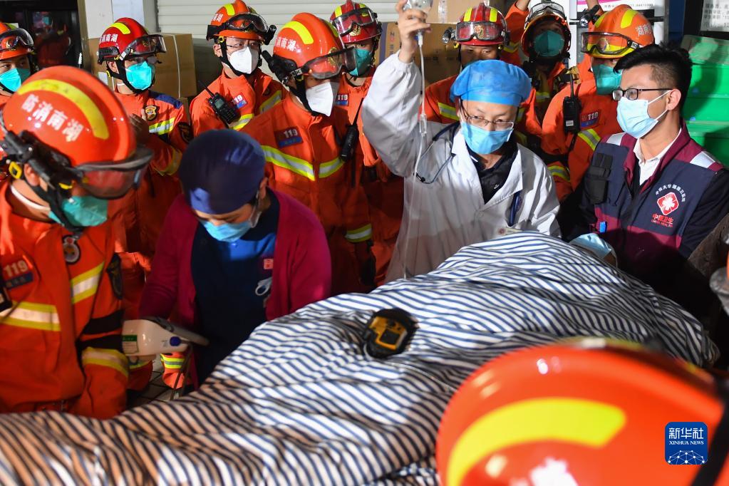 3日4时10分许,医务人员进入搜救现场评估获救女子生命体征。约5分钟后,获救女子被抬出事故现场。“和她交流,能有快速的反应,证明基本的神志和生命体征是正常的。”现场一名来自湘雅附三医院的医务人员告诉记者。
