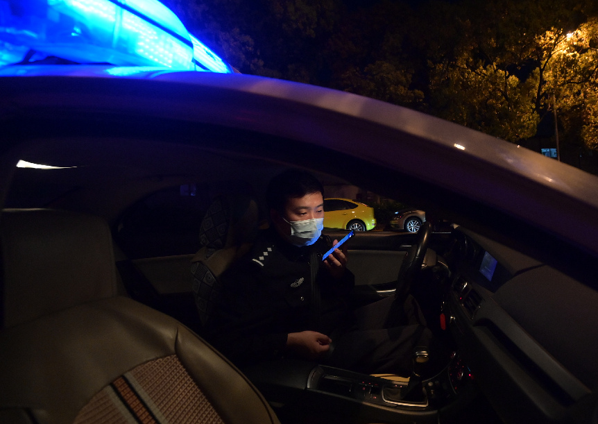 ↑4月10日,在上海市第五人民医院门口接处警情时,周誉又接到临近辖区派出所打来的协查电话。