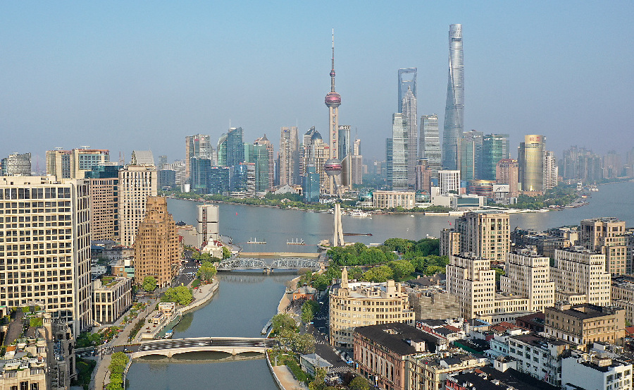 ↑“静态”管理之下,上海乍浦路桥和外白渡桥少了往日的车流(4月21日摄,无人机照片)。