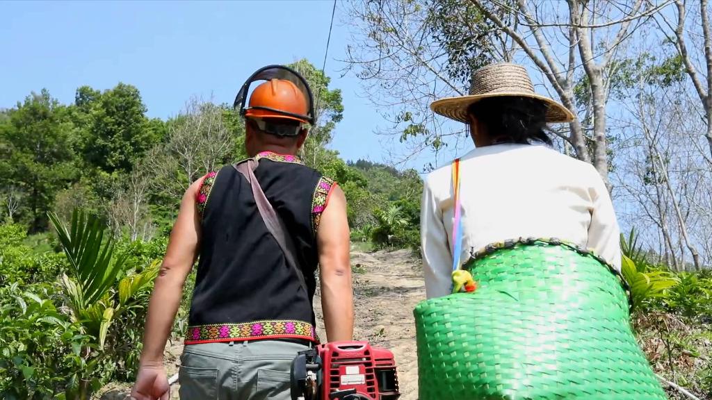 王启望夫妇也在村里率先大规模种植茶树。由于家里老人身体不方便帮忙看小孩,夫妻俩就背着小孩在地里干活。