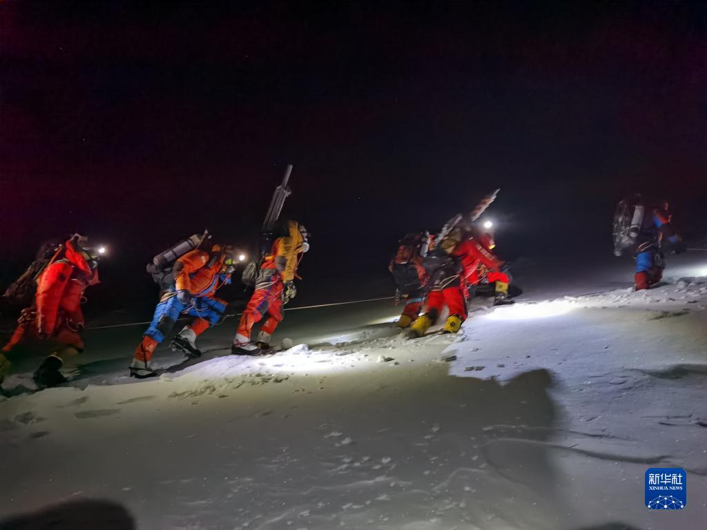 5月4日凌晨,珠峰科考队员从突击营地出发,向珠穆朗玛峰峰顶发起冲刺。新华社特约记者 索朗多吉 摄