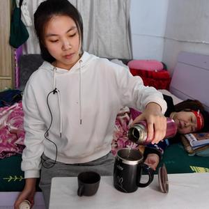 5月3日,福州一处出租屋内,王林慧在照顾母亲。