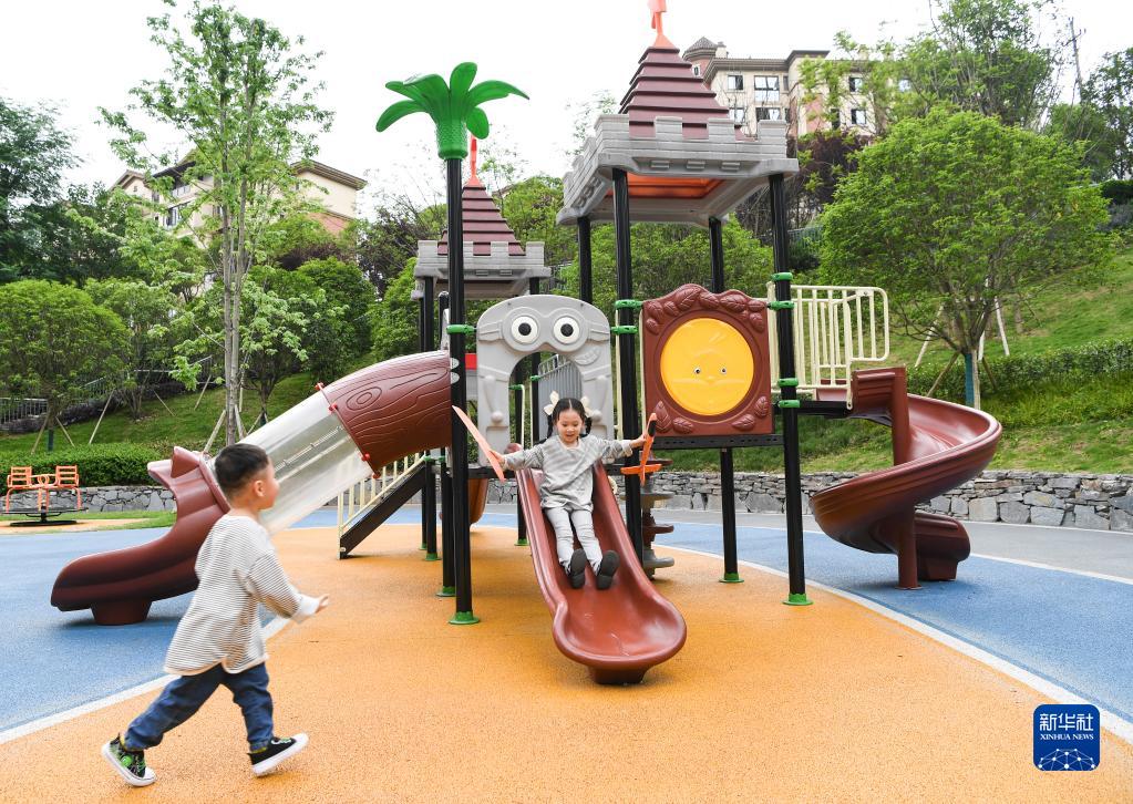 小朋友在重庆江北区石子山社区体育文化公园玩耍(4月29日摄)。新华社记者 王全超 摄