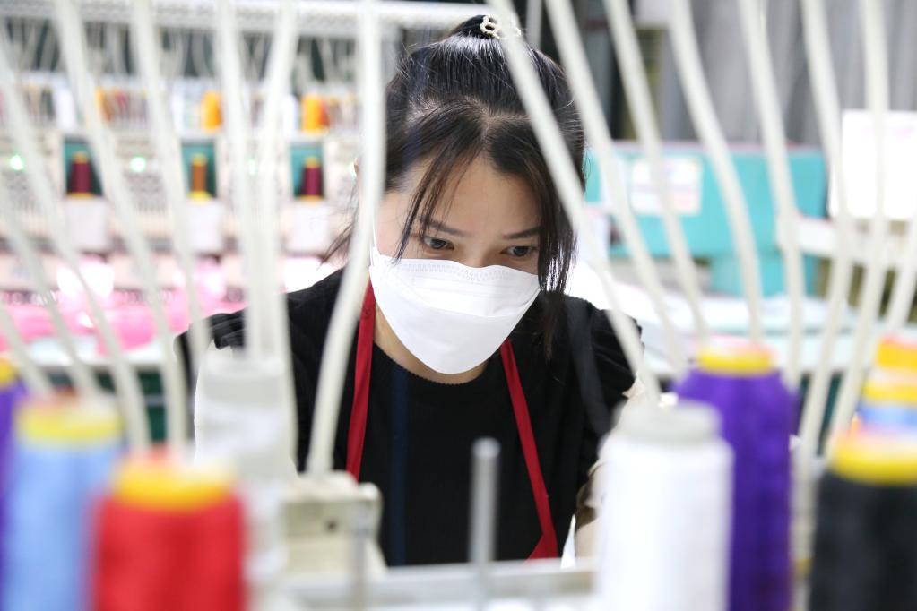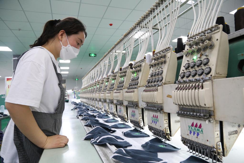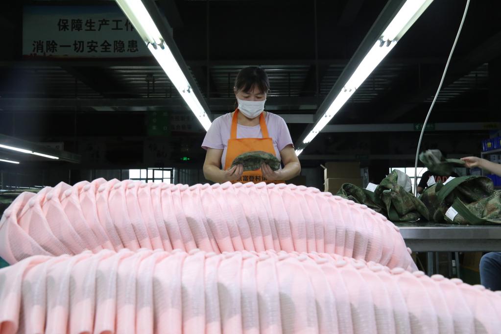河南淮阳瑞能服帽生产车间。(新华社发)
