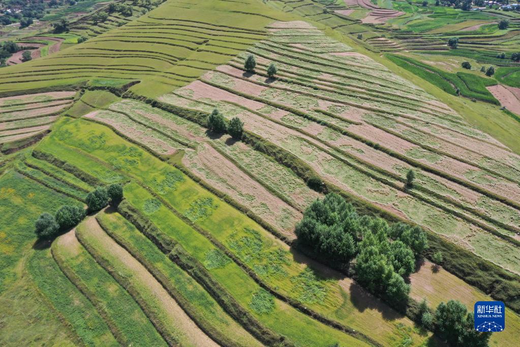 这是宁夏固原市西吉县的小杂粮种植基地(2020年8月13日摄,无人机照片)。新华社记者 卢鹰 摄