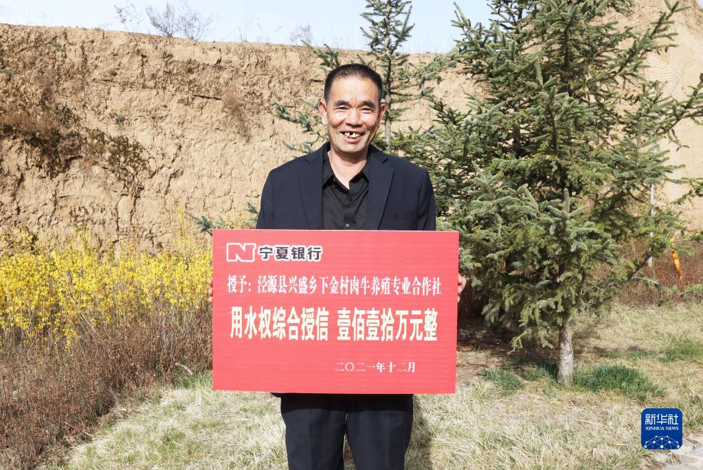 你有林权证,我有水权证。在泾源县兴盛乡下金村,养牛大户于建辉一年肉牛出栏量在800头左右,对流动资金的需求量比较大。往年他用县城的门面房、铲车等抵押贷款,如今他的抵押物多了一个用水权证。“用水权这个东西看不见摸不着,却能成为一笔资产。”有了这本用水权证,银行给于建辉的授信额度增加到110万元。