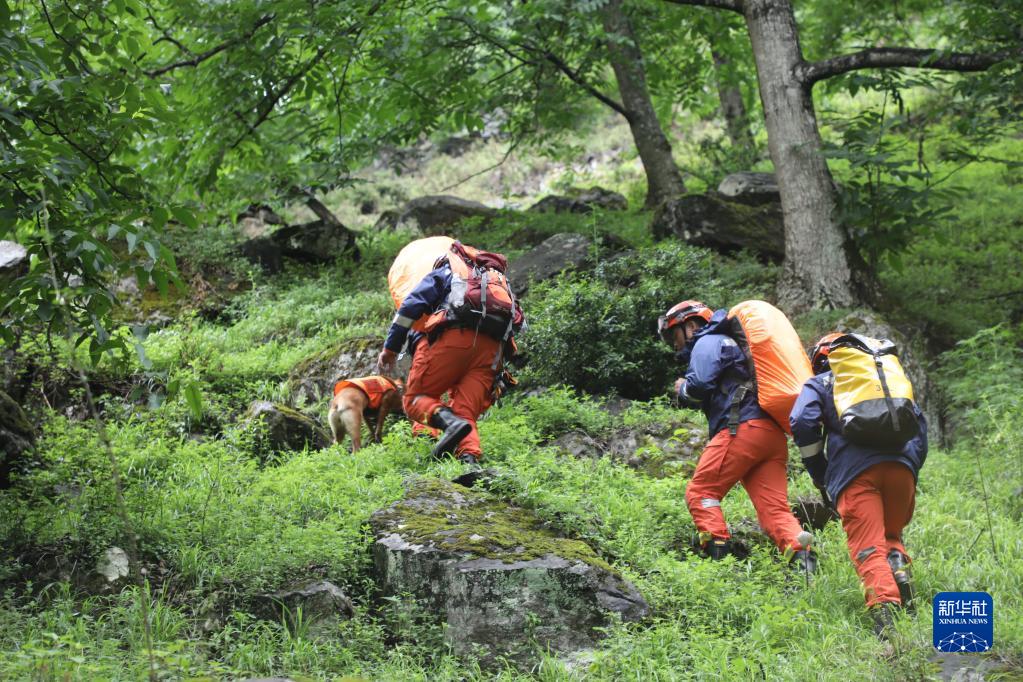 5月14日,云南省森林消防总队救援人员进山搜救失联人员。新华社发