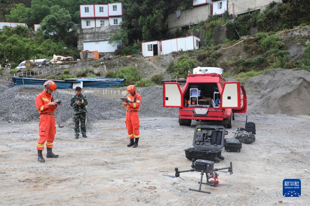 5月14日,云南省森林消防总队救援人员使用无人机开展救援工作。新华社发