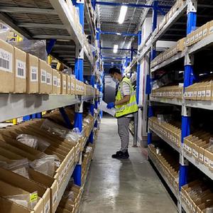 走进分拨中心可以看到,货物按照不同类型分类摆放,工人们正有条不紊地进行打包、称重、整理等工作。这里有来自美国、日本、韩国、荷兰、德国、新加坡等十余个国家和地区的数万种关键零部件,大到大型设备、小到线圈垫片,堪称是集成电路产业不可或缺的家门口“粮仓”。