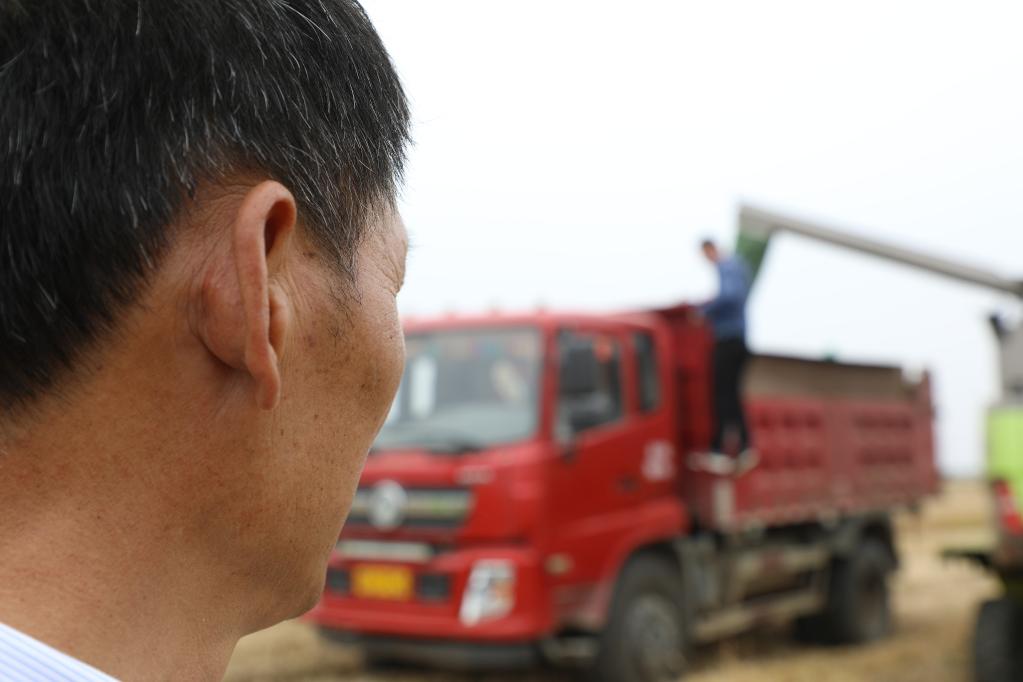 在赵建成所在的湖阳镇张湾村,麦田里收割机穿梭,地头的卡车装满散发香味的新麦后,直奔粮仓。赵建成说,丰收到仓,是种粮人每年最快乐的时候,“虽说辛苦,但是心里高兴”。