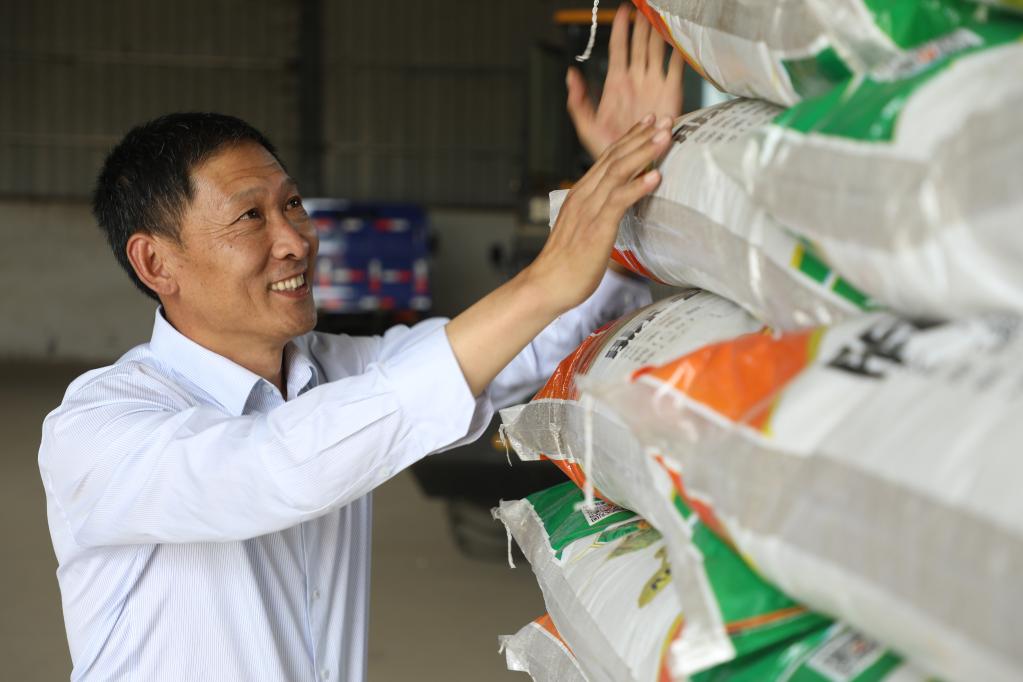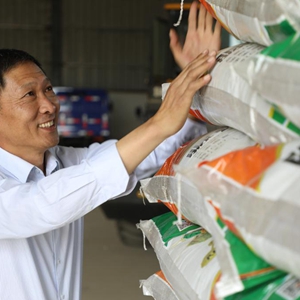 赵建成在整理仓库里的化肥,准备夏收之后的夏种。(新华社发)