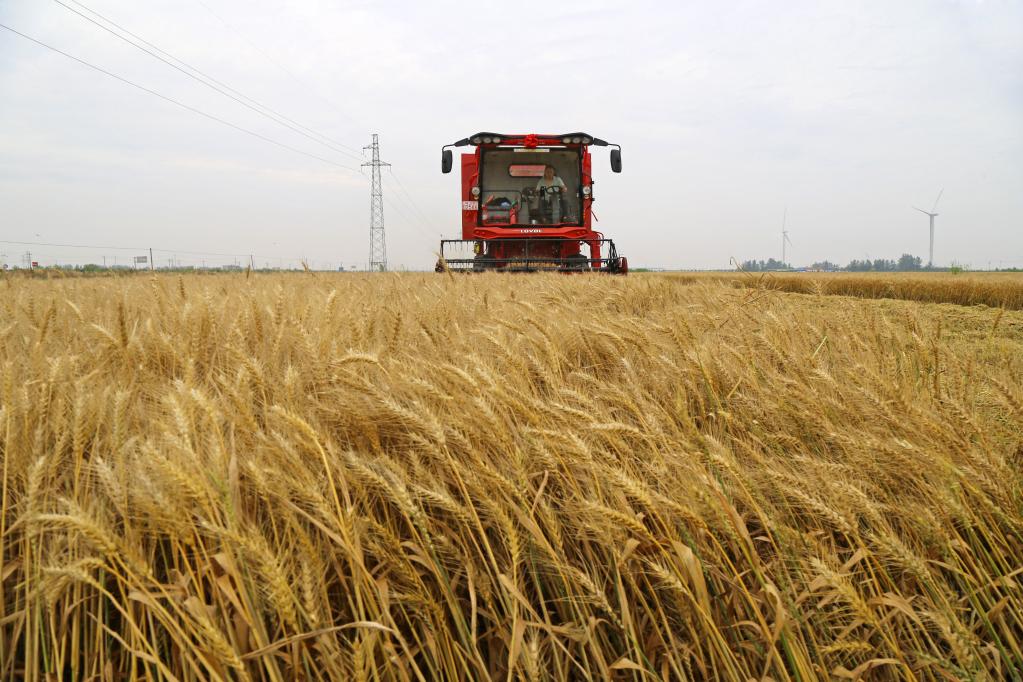 5月27日,记者来到安徽阜阳市颍上县五十铺乡看到,农机手正在操作机械设备收割小麦。
