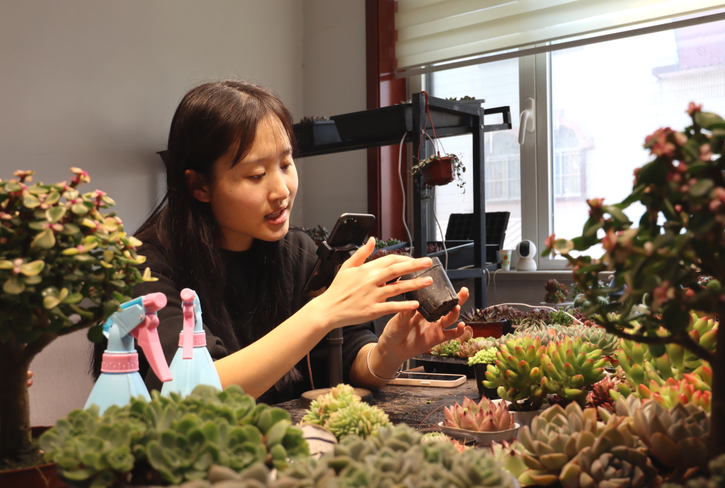 今年29岁的李君是山东省青州市弥河镇人,6年前大学毕业后返乡创业,将自家大棚种的多肉植物在网上销售。“因为发现深夜咨询、下单的人比较多,我就尝试做深夜直播,没想到吸引了不少夜班族、失眠的人和‘夜猫子’看。”她说。