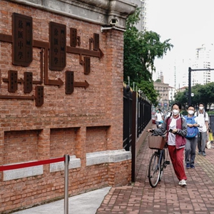 清晨7时许,上海市徐汇中学校门外,约400名学生按计划时间错峰到校。学生事先准备好“随申码”,保持一米间隔,经“数字哨兵”验证并测温后有序进校,老师们则在教室门口迎候。
