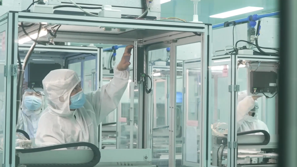 走进公司的超精密加工与检测实验室,一边是自动化的车间,不同类型的抛光设备在飞速运行,各种机器人手臂在高效工作;一边是实验室,工作人员有条不紊地检测着产品。