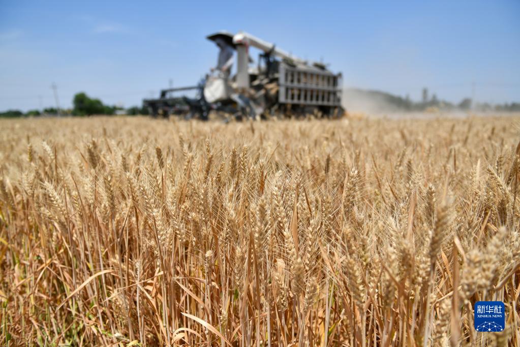 6月7日,收割机械在山东省济南市长清区归德街道翟庄村收割小麦。