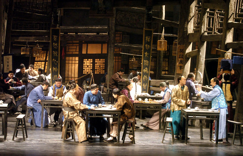2004年5月27日林兆华导演新版话剧《茶馆》演出剧照。(资料照片)