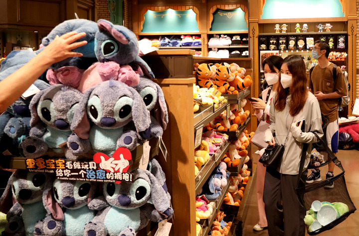 6月10日,游客在迪士尼世界商店内选购玩偶。新华社记者 方喆 摄