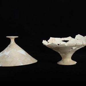 这是甘肃庆阳南佐遗址出土的白陶带盖圈足簋。