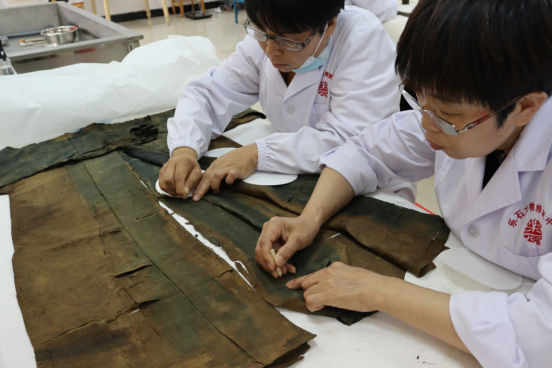 “文物是人类历史生活发展历程中遗留下来的具有历史研究、艺术、科学考古价值的珍贵文化遗产。所有的文物是无法再生产的,我们能做的只有将文物最大限度地保存好,特别是纺织文物,保存和修复都比较繁琐。”参与此次修复的工作人员说,这一件衣物差不多要修复两三个月时间。(沈艺)