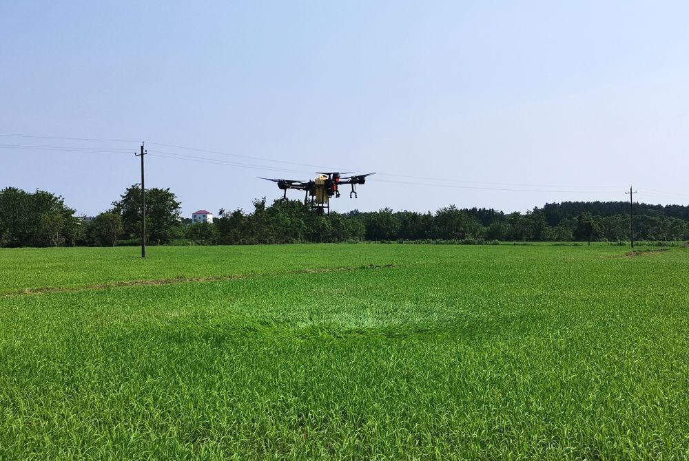 到了夏至时节,气温升高,要及时防治水稻病虫害。在江西进贤县七里乡江上村的高标准农田种植基地上,种粮大户胡高飞正操作无人机,按划定线路精准有序施药。