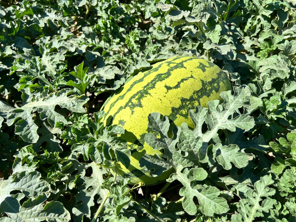 6月23日,甘肃省白银市靖远县靖安乡瓜田里的硒砂瓜。新华社记者王植樱 摄