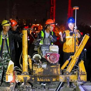 6月29日,在乌将铁路地窝铺车站扩能改造施工现场,中铁一局的施工人员进行起道作业。新华社记者 丁磊 摄