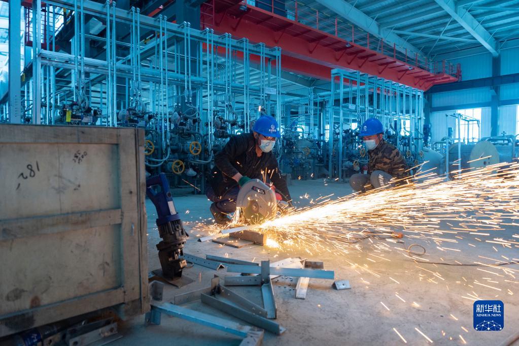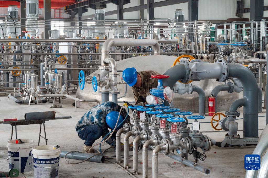 工人在黑龙江联顺绿色生物医药产业项目施工现场施工作业(6月23日摄)。新华社记者 谢剑飞 摄