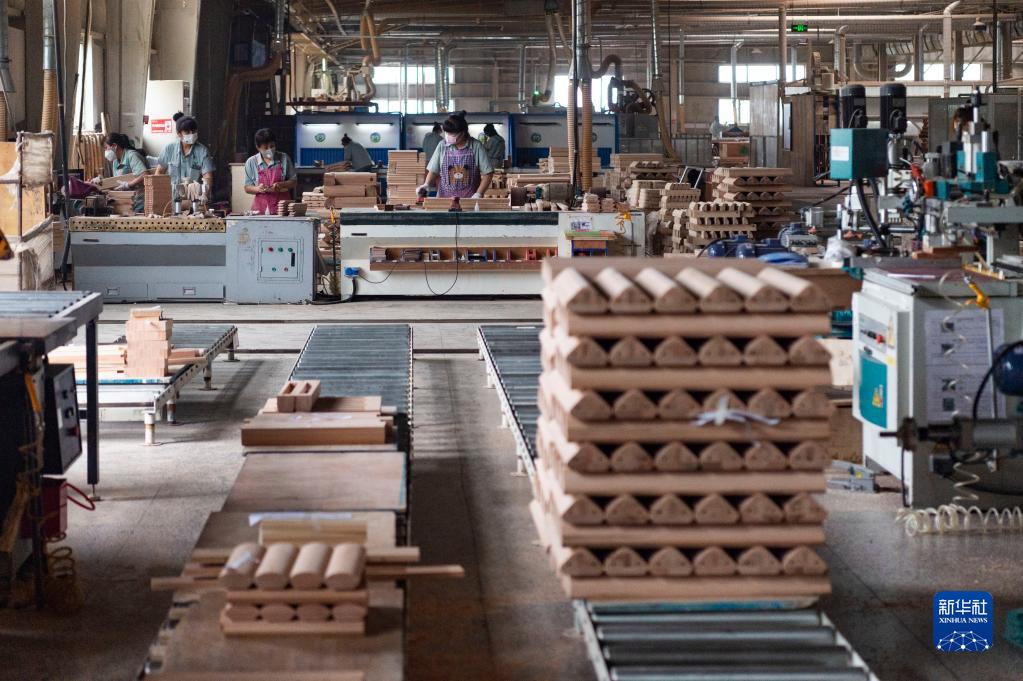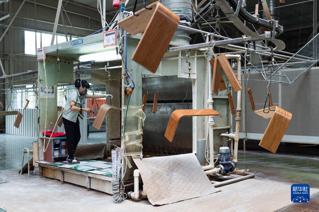 工人在黑龙江省七台河市双叶家具实业有限公司车间内生产作业(6月23日摄)。新华社记者 谢剑飞 摄