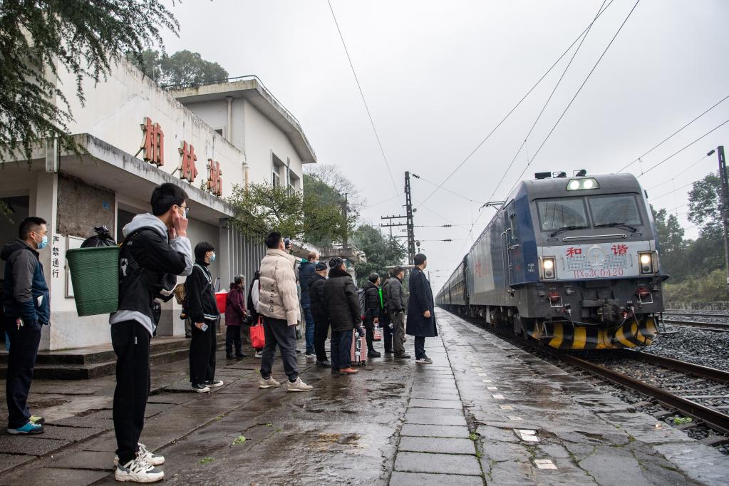 2022年2月4日,乘客在位于成渝铁路线上的柏林站等车。新华社记者 唐奕 摄