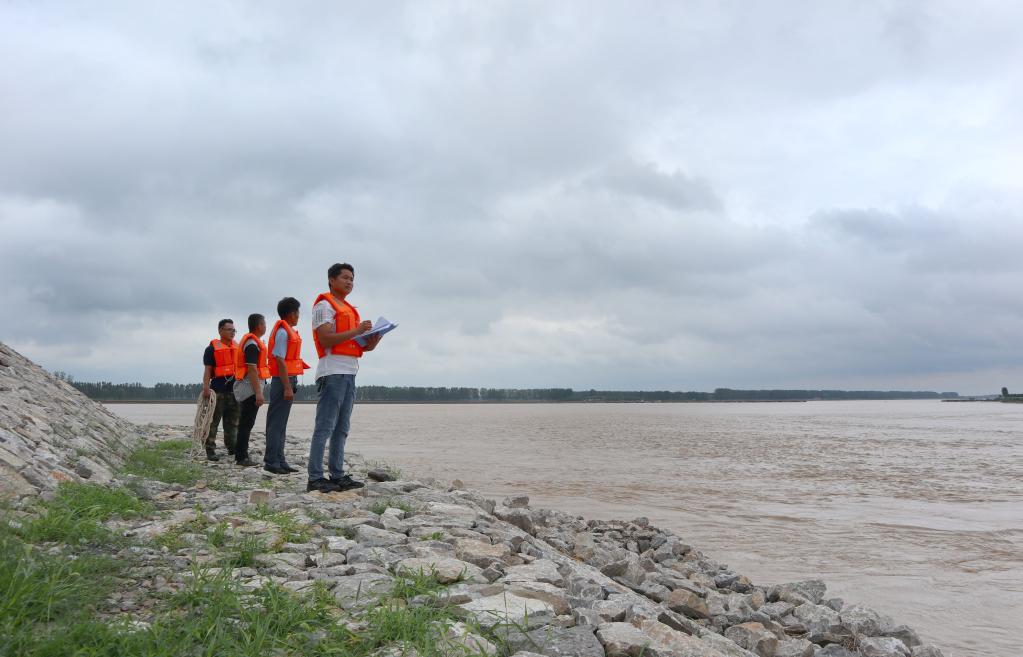 黄河河务局苏阁管理段的工作人员在黄河岸边进行防溺水巡查。新华社记者徐速绘摄