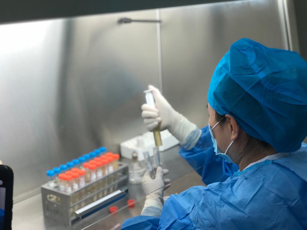 图为哈医大二院产前诊断中心实验室人员在进行有关处理操作。(受访者提供)