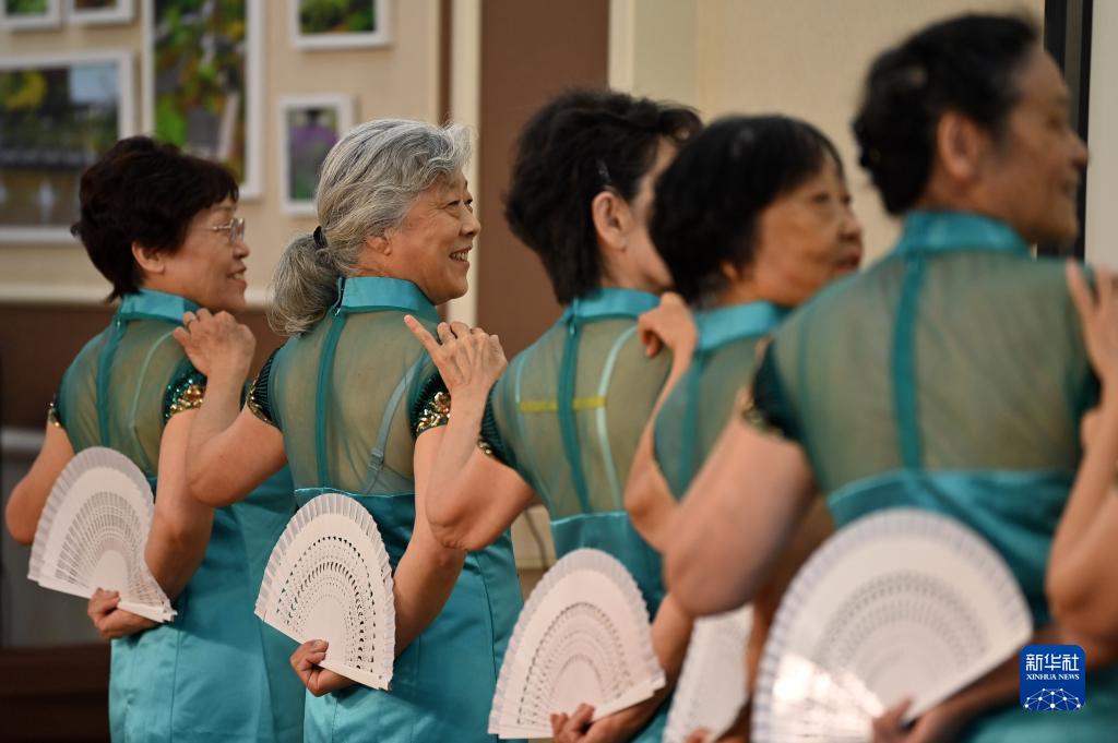在天津市静海区一大型养老社区内,老人们在上舞蹈课(2021年8月30日摄)。新华社记者 李然 摄