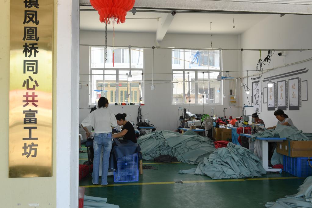 图为村民在“共富工坊”加工太阳伞棚布。 新华社记者翁忻旸 摄