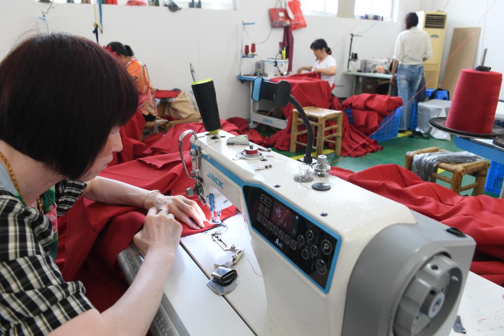 图为村民在“共富工坊”完成缝纫订单。 新华社记者翁忻旸 摄