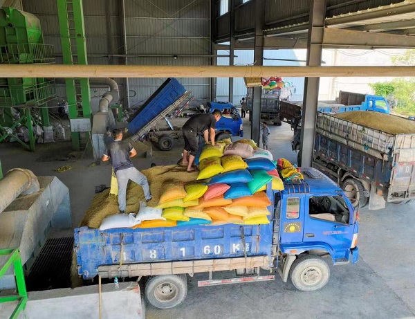 吉水县乌江镇红土地优质稻专业合作社在收割优质早稻
