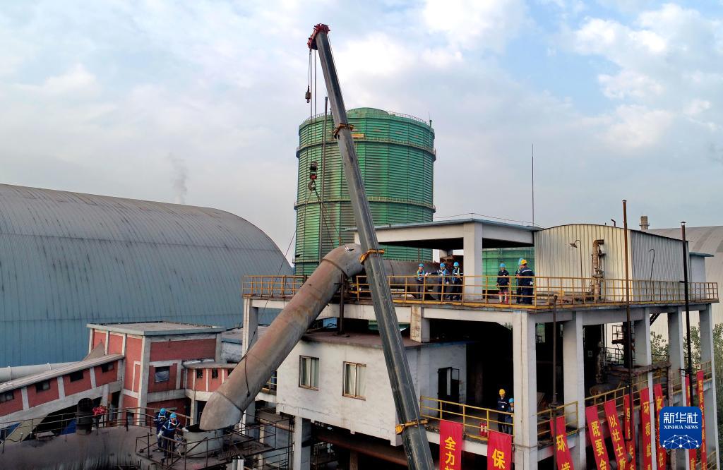 河北邢台市德龙钢铁有限公司2号竖炉被拆除(2017年9月29日摄)。新华社记者 牟宇 摄