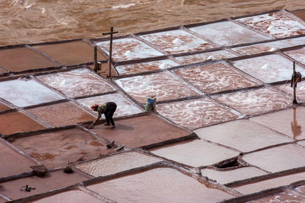 加达村村民在古盐田里劳作。新华社记者 陈尚才 摄