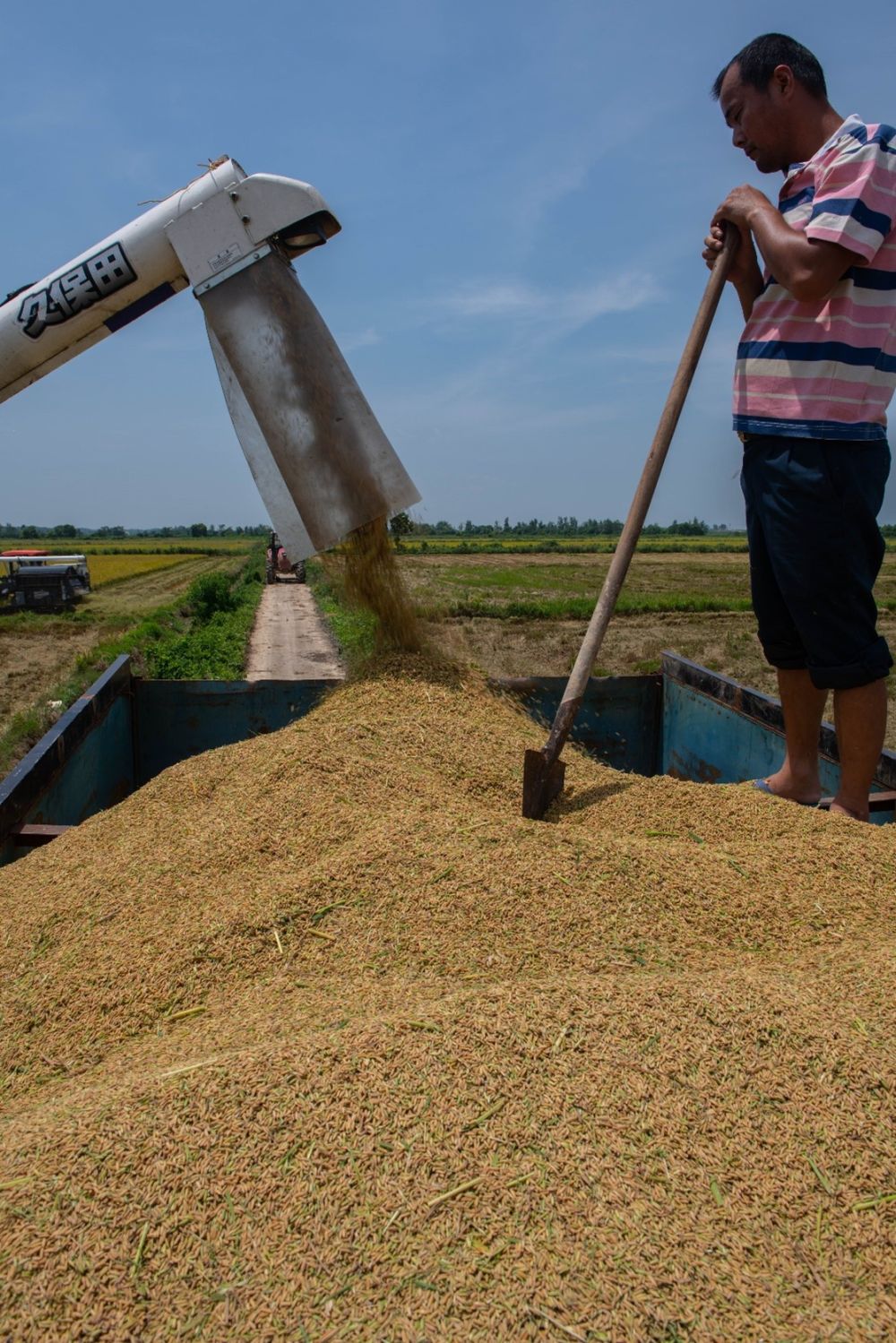 收割的稻谷正在装车(实习生陈义庆 摄)