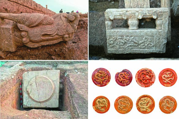 图说:凤阳明中都遗址出土的建筑构件。新华社发(国家文物局供图)