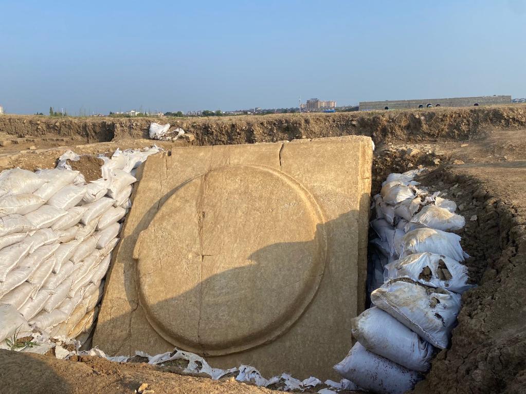 遗址发掘现场,王志正和考古队员们顶着烈日在宫殿区西北角作业。不远处,就是此次前朝区主殿出土的巨型石础,蔚为壮观。础面边长有2.5米至2.6米,覆盆直径达1.8米,体量为目前国内所见宫殿建筑石础之最,也由此推断宫殿建筑规模宏大。