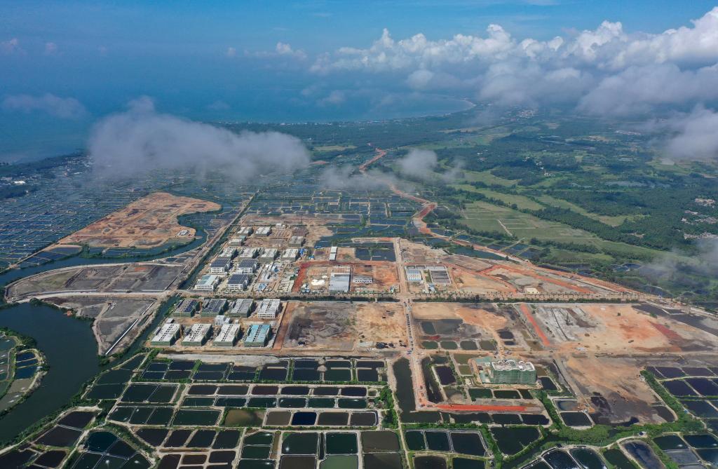 这是正在建设中的文昌冯家湾现代化渔业产业园(无人机照片)。新华社记者郭程 摄